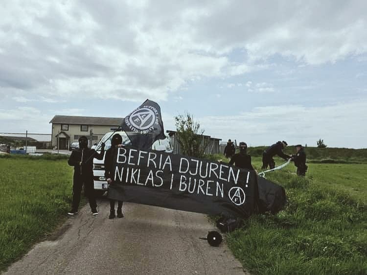Después de esto, nuestra resistencia aumentaría. Djurfront era muy consciente de cómo nos retrataban los que apoyaban la cría de pieles, pero a su pesar optamos por asumir ese papel en lugar de rechazarlo. Las manifestaciones se hicieron más intensas, se imprimieron octavillas, pancartas y carteles con el mensaje de cerrar la granja de visones de Falkenberg, se organizaron visitas a domicilio a Niclas Pettersson, se encadenaron activistas a las puertas de la granja y se realizaron manifestaciones en tren por Falkenberg. Pettersson también recibió llamadas telefónicas a todas horas del día y de la noche desde distintos números, a veces cientos, y otras veces era incluso el propio Niclas quien llamaba a sus «colegas» mientras se comportaba de forma extremadamente sospechosa. Las vandalizaciones contra la granja, el propio Pettersson y personas de alto rango dentro de Svensk Mink (Visón Sueco) eran constantes, y algo que demostraría ser extremadamente eficaz. La lucha ha sido larga e intensa y nos resulta imposible reescribir cada detalle, por importante que sea. Por ello, he aquí un resumen de algunos de los acontecimientos ocurridos a lo largo de los años que creemos que merecen ser mencionados.